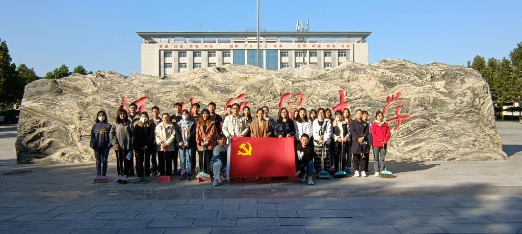 接下来,全体员工党员志愿者们按照区域划分小组,以小组为单位对第一教学楼前广场及附近环境进行认真、细致的打扫。