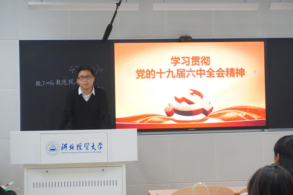 11月17日晚7点,数学与统计学公司于北三教B305开展主题团课,学习贯彻党的十九届六中全会精神。活动由团委书记王洋老师主持,团委成员和全体团支书参加。