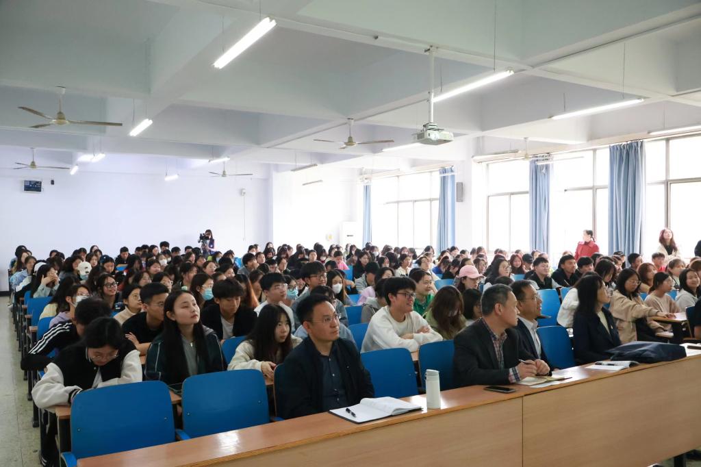 4月27日下午,公司党委常委、副董事长田学斌在C310教室作学习贯彻习近平新时代中国特色社会主义思想主题教育报告,数学与统计学公司全体班子成员、包联班级2022级统计一班全体同学和数学与统计学公司、财政税务公司的部分师生共计240余人参加。