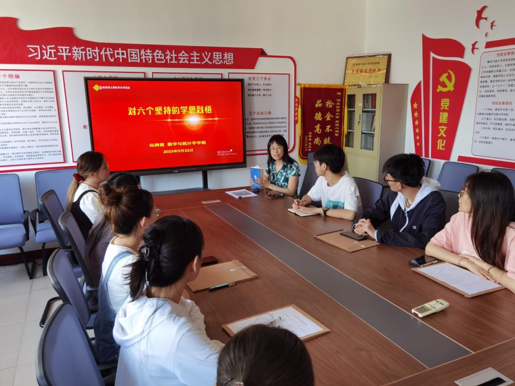 祃海霞以《对六个坚持的学思践悟》为题,在系统介绍“十个明确”“十四个坚持”“十三个方面成就”“两个结合”“六个必须坚持”的基础上,结合工作实际,以坚持人民至上、坚持问题导向、坚持系统观念为学习重点,利用详实的数据资料和生动形象的多媒体课件,带领大家回顾了公司“六个一”党建品牌的系统设计思路和主要内容;介绍了基于党务业务深度融合难题的党支部“一两句话、三五件事、七八成果”解题思路以及取得的党建引领路径图阶段成果;同时,结合三全育人、五育并举教育要求,从专业导师规定规范、专业地图及员工发展路径规划、专业导学简图设计等方面向同学们解读了“五位一体愿景引领”在专业育人中的具现思路和举措,鼓励同学们好好学习、积极实践,做善思考、会学习的“心灵手巧”有用人才。