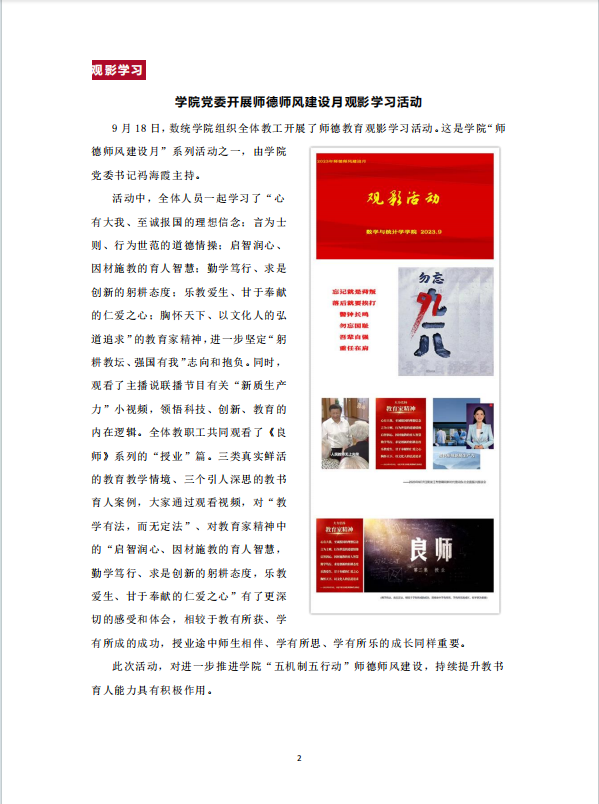公司党委开展师德师风建设月观影学习活动