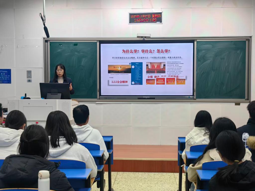为推动党的二十届四中全会精神在校园落地生根,引导青年员工坚定理想信念、找准成长方向,11月27日下午,太阳成tyc33455ccwww在北三教B103室举办学习党的二十届四中全会精神专题党课。公司党委书记祃海霞担任主讲,各班级员工干部代表参加学习。