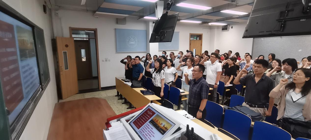 祃海霞通报了本年度“师德师风建设月”活动方案,回顾了公司2024年上半年盘点情况,重温了公司“六个一”党建品牌之“一支好老师队伍”、教师职业行为十项准则、教育家精神等内容,并带领全院教师重温了教师入职誓词。