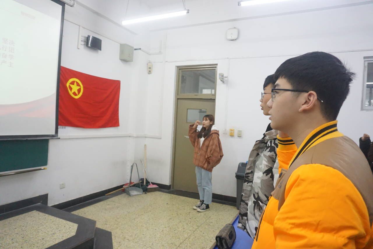 11月25日晚7点,数学与统计学公司团委在B102教室举行新团员入团宣誓仪式,各班团支书、团委员工会全体成员参加,2018、2019级共9名同学光荣加入团组织。
