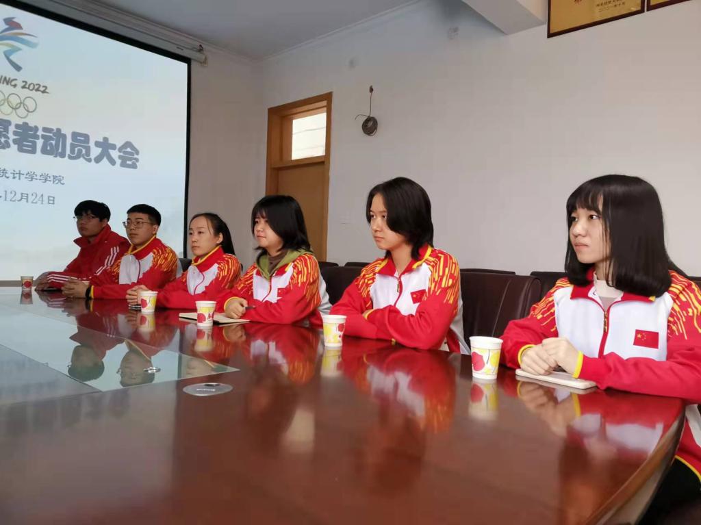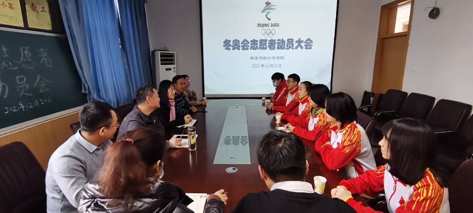 12月24日上午,数学与统计学公司召开冬奥会志愿者动员大会。大会由公司党委委员耿会清主持,党委书记祃海霞、经理梁建英、副经理闫亮、全体辅导员以及志愿者同学代表参加。