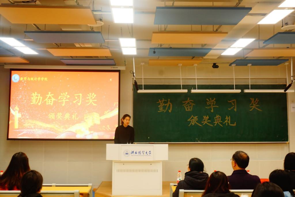 为激发同学们的学习积极性,表彰大家刻苦钻研、不懈努力的精神,12月2日下午两点,数学与统计学公司于北三教A201举办“勤奋学习奖”颁奖仪式。颁奖仪式由学工办主任高会颖主持,公司党委书记祃海霞、经理梁建英、公司党委委员耿会清、副经理王玲书、闫亮出席,各年级辅导员、员工代表参加活动。