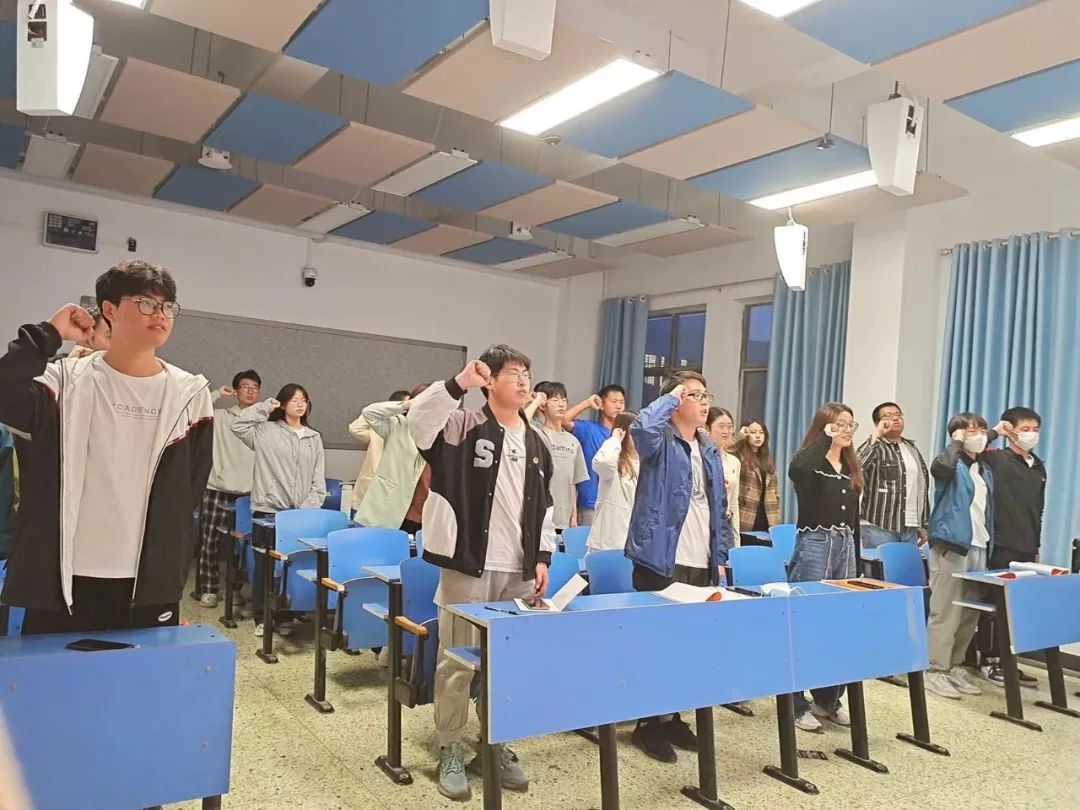 为热烈庆祝中国共青团成立100周年,献礼建团百年,4月29日晚7点,数学与统计学公司于北三教A417举行2021-2022学年团委表彰大会暨重温入团誓词活动。团委书记王洋老师出席活动并发言,团委副书记、团委同学及各班团支书参加。