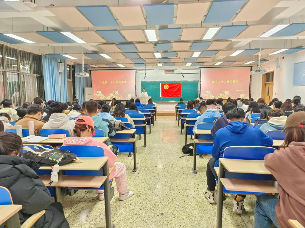 本次课程以解读党的二十大报告为主题。首先,她从报告相关内容讲起,包括大会主题、新时代十年来的三件大事、五个重大原则、“两步走”战略安排和中国共产党的中心任务等方面。接着,她通过短片介绍新时代十年伟大变革和过去五年工作总结。过去的五年,我们党团结带领人民攻克了许多长期没有解决的难题,办成了许多事关长远的大事要事,推动党和国家事业取得举世瞩目的重大成就。在新时代的十年来,党和国家事业取得历史性成就、发生历史性变革,推动我国迈上全面建设社会主义现代化国家新征程。最后,她阐述了青年团员要坚持把习近平新时代中国特色社会主义思想作为一切工作的根本遵循和行动指南,深刻把握其核心要义、精神实质和实践要求,深刻领会“两个结合”,坚持学思用贯通、知信行统一,自觉做坚定信仰者和忠实实践者。