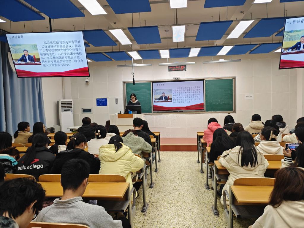 在第二节课《书写强国建设民族复兴的壮丽篇章一学习习近平总书记6.26重要讲话精神》中,团委宣传部部长闫雨菲为大家解读了习近平总书记2023年6月26日同团中央新一届领导班子集体谈话精神,强调了青年一代要在强国建设和民族复兴中体现担当,积极为国家发展贡献力量。