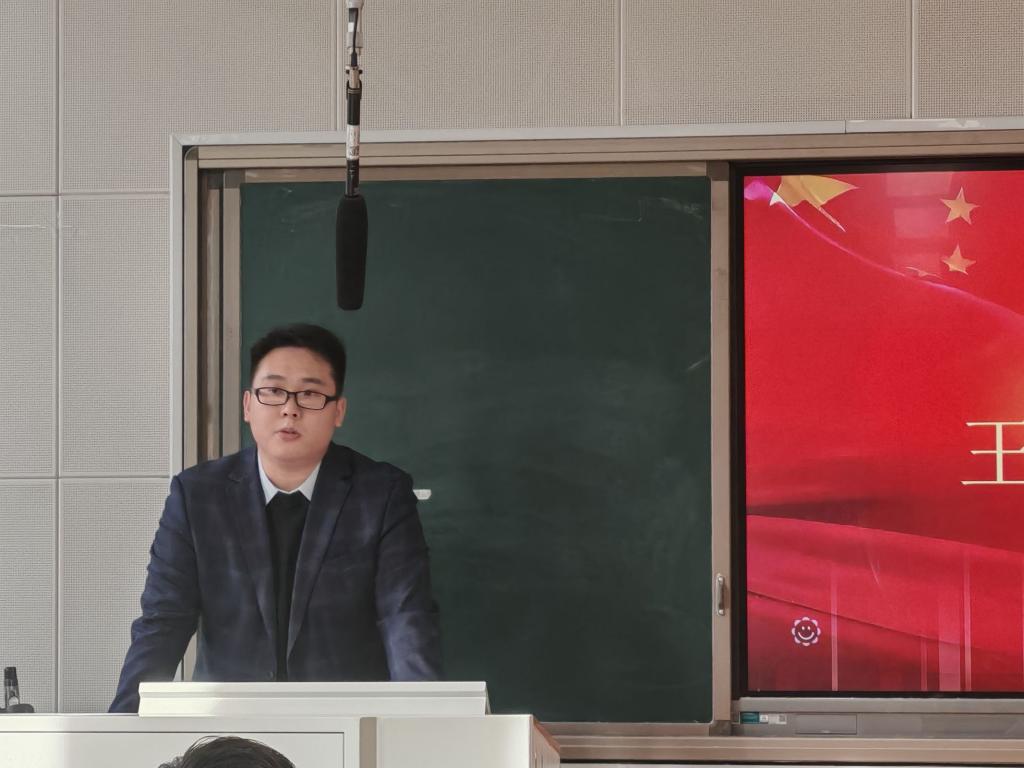 第三节课《青春孕育无限希望,青年创造美好未来》中,团委实践竞赛部部长杨博雅讲述了优秀青年代表的成长故事和奋斗经历,号召同学们向榜样学习,也将激励着广大青年学子勇于奋斗、敢于创新。