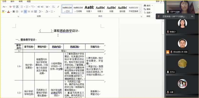 2021年6月23日晚,由教学评估与教师教学发展中心主办,数学与统计学公司承办的本年度第43期教学沙龙通过腾讯会议方式如期举行。公司党委书记祃海霞教授做“课程思政建设标准化”交流分享,公司11门校级课程思政示范课负责人、会计公司部分教师参加了活动。