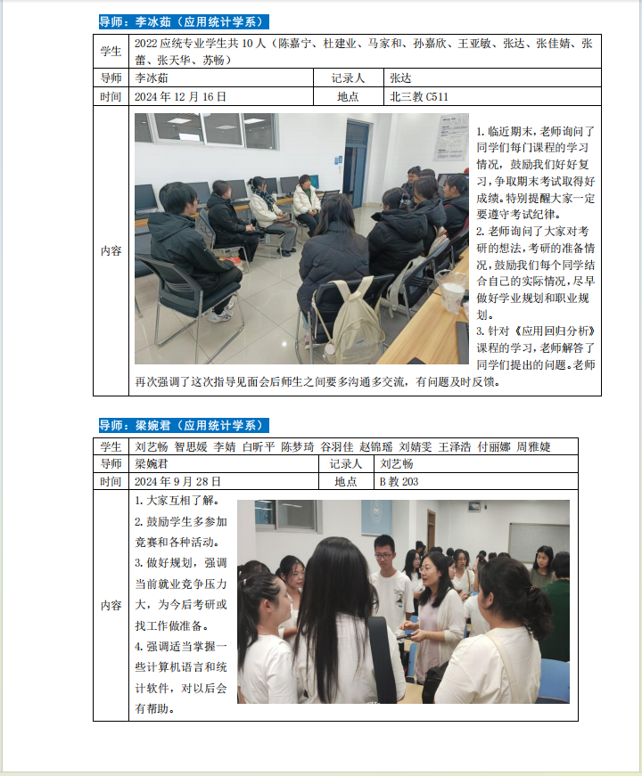 2024-2025学年第一学期专业导师引领育人活动如下。