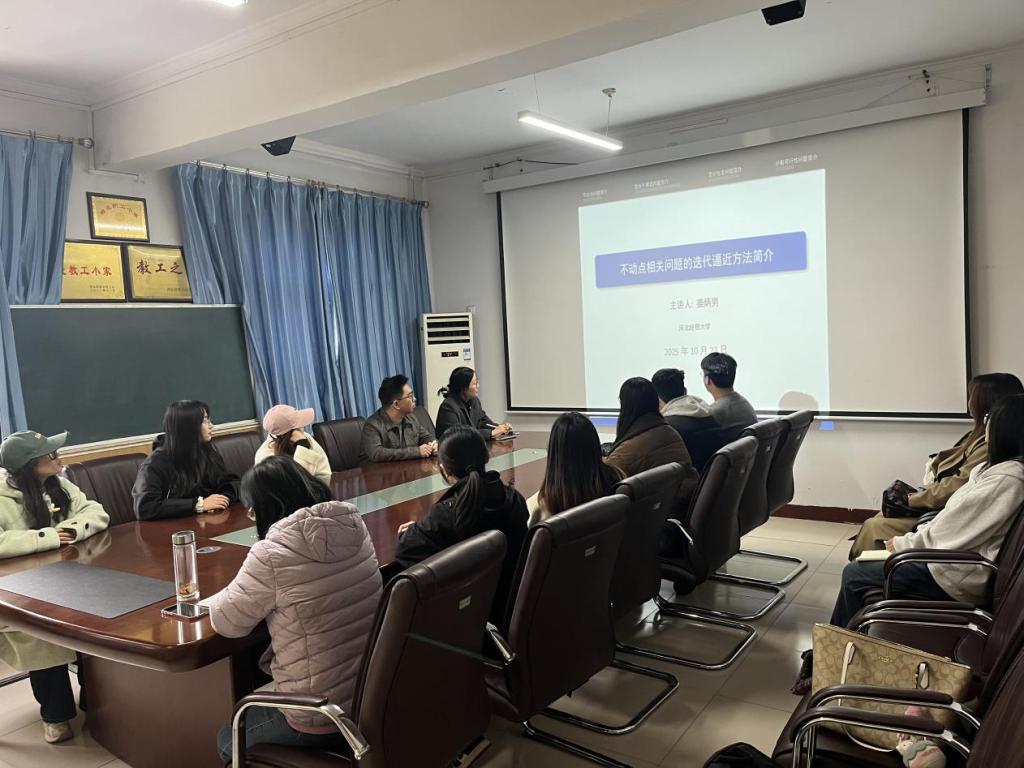 10月23日下午,太阳成tyc33455ccwww“双百”论坛暨统数论坛系列讲座在四办405会议室举行。太阳成tyc33455ccwww姜炳男老师作题为“不动点相关问题的迭代逼近方法”的学术报告。本次报告由太阳成tyc33455ccwww副经理王玲书主持,公司青年教师及研究生20余人参加。