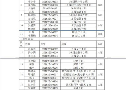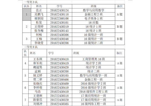 1. 请以下获一、二、三等奖的所有同学,请实名申请加入QQ群:经贸18数模班,QQ号:707184885(群内名称格式:班级-姓名,例如:数学17-1班-陈某),具体颁奖和国赛培训信息,将在本QQ群内另行通知。