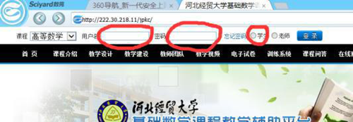 http://222.30.218.11/jpkc, 用户名和密码默认为学号,勾选“员工”,点击登陆;