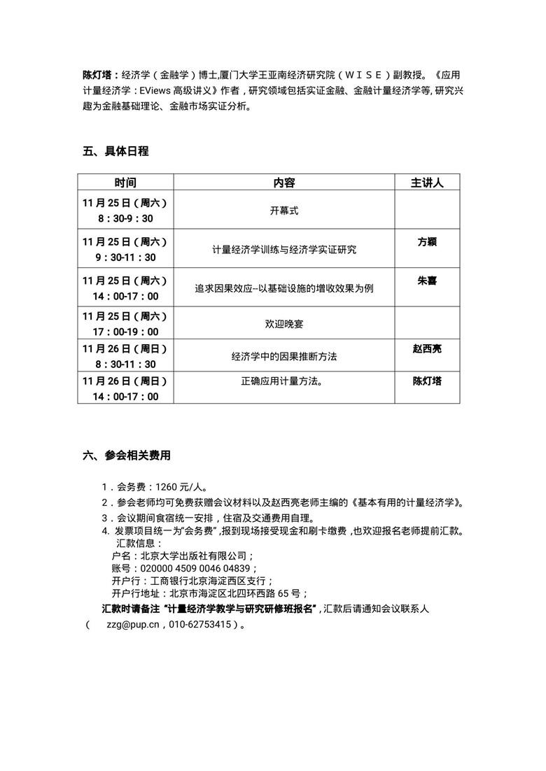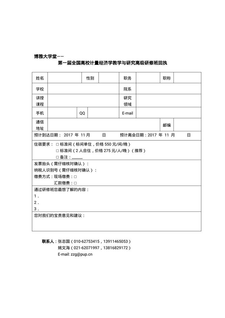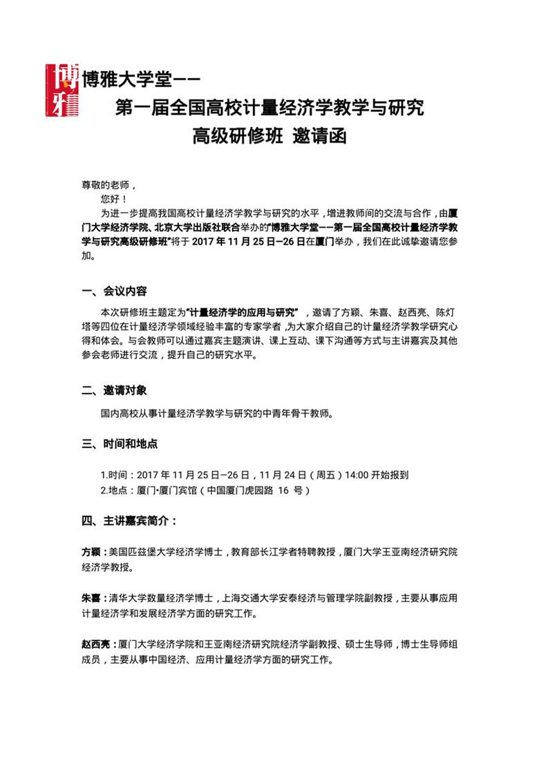 博雅大学堂—— 第一届全国高校计量经济学教学与研究高级研修班邀请函