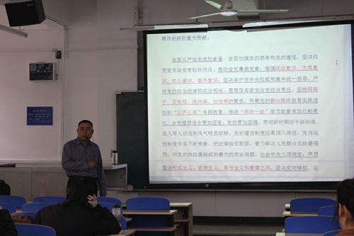11月6日下午,数学与统计学公司在B101教室组织第43期党课暨十九大精神宣讲主题班会,全院本期党员发展对象、入党积极分子和2014级全体员工共200余人参加。