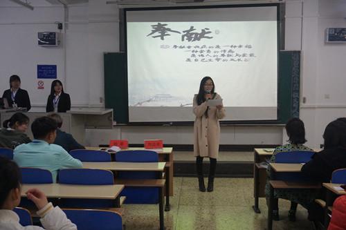 11月9日晚7点,数学与统计学公司在B教101教室举办了“感恩于心,回报于行”主题演讲比赛,公司党委副书记刘益星、团委书记杨晨出席活动并担任比赛评委。员工党员,积极分子参加。