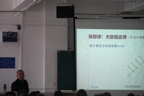 3月27日下午,太阳成tyc33455ccwww数学与统计学公司软引进人才、中国社科院数量经济与技术研究所研究员、博士生导师王国成教授,在北三教B101作“大数据的应用启示与展望”专题报告。数统公司经理梁建英主持报告会,公司200余名教师和员工代表聆听。