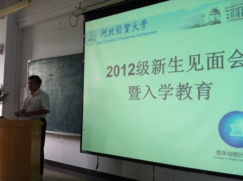 更好了解和适应老员工活,更直接掌握专业教学特色及学科发展前景等知识,同时也为增强大一新生与公司领导老师之间的交流,培养员工公司认同感,数统公司积极响应公司号召,于9月22日在公司B教201教室举行了“青春激昂梦想起航”——数统公司2014级新生入学教育活动。公司党总支书记靳国良,党总支副书记赵春果,经理赵秀恒教授等院领导出席了见面会。公司各职能部门负责人、辅导员以及2014级本科生全体新生参加见面会。开学典礼由党总支副书记赵春果主持。