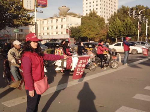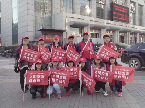 2013年10月10日,数统公司青志部在石家庄市北国商城附近一繁华的十字路口进行了交通协警的活动。