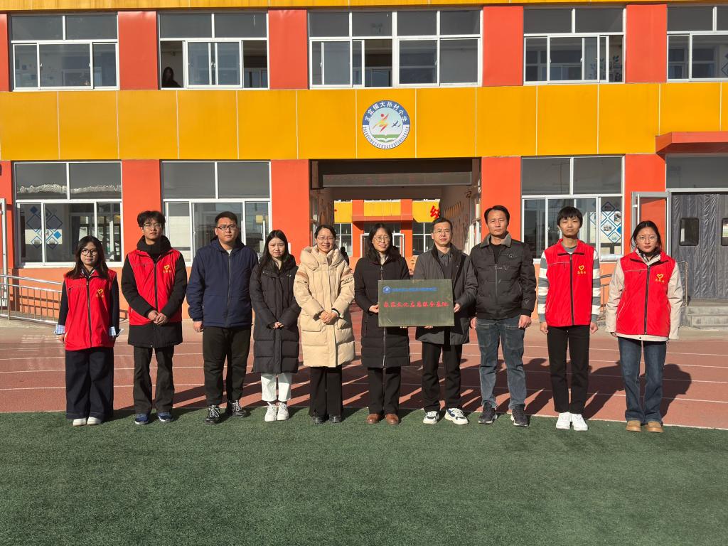 接着,祃海霞对大孙村小学的大力支持表示衷心的感谢,并表示,公司志愿者一定秉承“奉献、友爱、互助、进步”的志愿服务精神,凝心聚力、共推乡村教育事业的蓬勃发展。同时,她希望青年员工志愿者进一步坚定理想信念,积极宣传数学思想和文化。祃海霞代表公司授予大孙村小学“数思”文化志愿服务基地牌匾,两校师生合影留念。