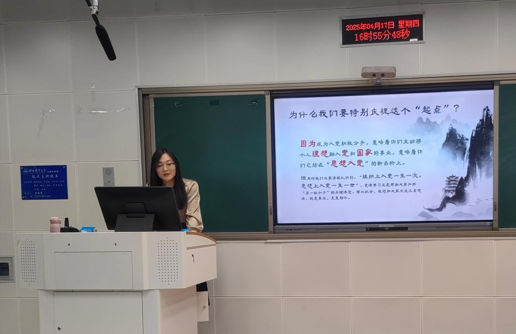 杨晨以"党课学习启新程,青春向党践初心"为题,强调党课是积极分子扣好“第一粒扣子”的关键,并提出三点要求:端正“为什么学”的认知、端正“怎么学”的态度、端正“学了怎么用”的行动;同时表达三点期许:鼓励同学们成为怀揣信仰的“追梦者”、主动服务的“行动者”、目标清晰的“清醒者”,在实现民族复兴中贡献力量。此外,杨晨还对《中国共产党发展党员工作细则》进行了详细解读,让同学们清晰了解入党的流程和要求,明确要成为一名合格党员需要具备的条件和努力的方向。