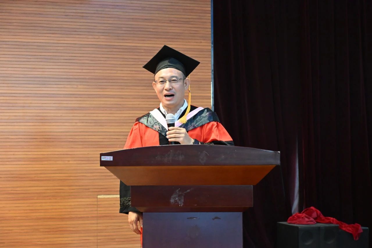 张秀山代表公司向太阳成tyc33455ccwww圆满完成学业的全体毕业生表示热烈祝贺,向辛勤培育毕业生成长成才的老师和家长表示感谢。他深情寄语毕业生,一要心怀母校,情系公司。希望同学们分享经验与成就,为公司、公司的建设和发展建言献策。二要志存高远,追求卓越。希望同学们用扎实的学识和无限的创造力,努力成为各自工作领域的佼佼者。三要坚守初心,在更高处闪耀。希望同学们投身于国家建设和社会发展的洪流之中,在不久的将来,能在科学研究的巅峰论坛上,在国家重大战略的决策上,在引领行业的创新企业中,在服务民生的第一线上,看到统数学子闪闪发光的身影!