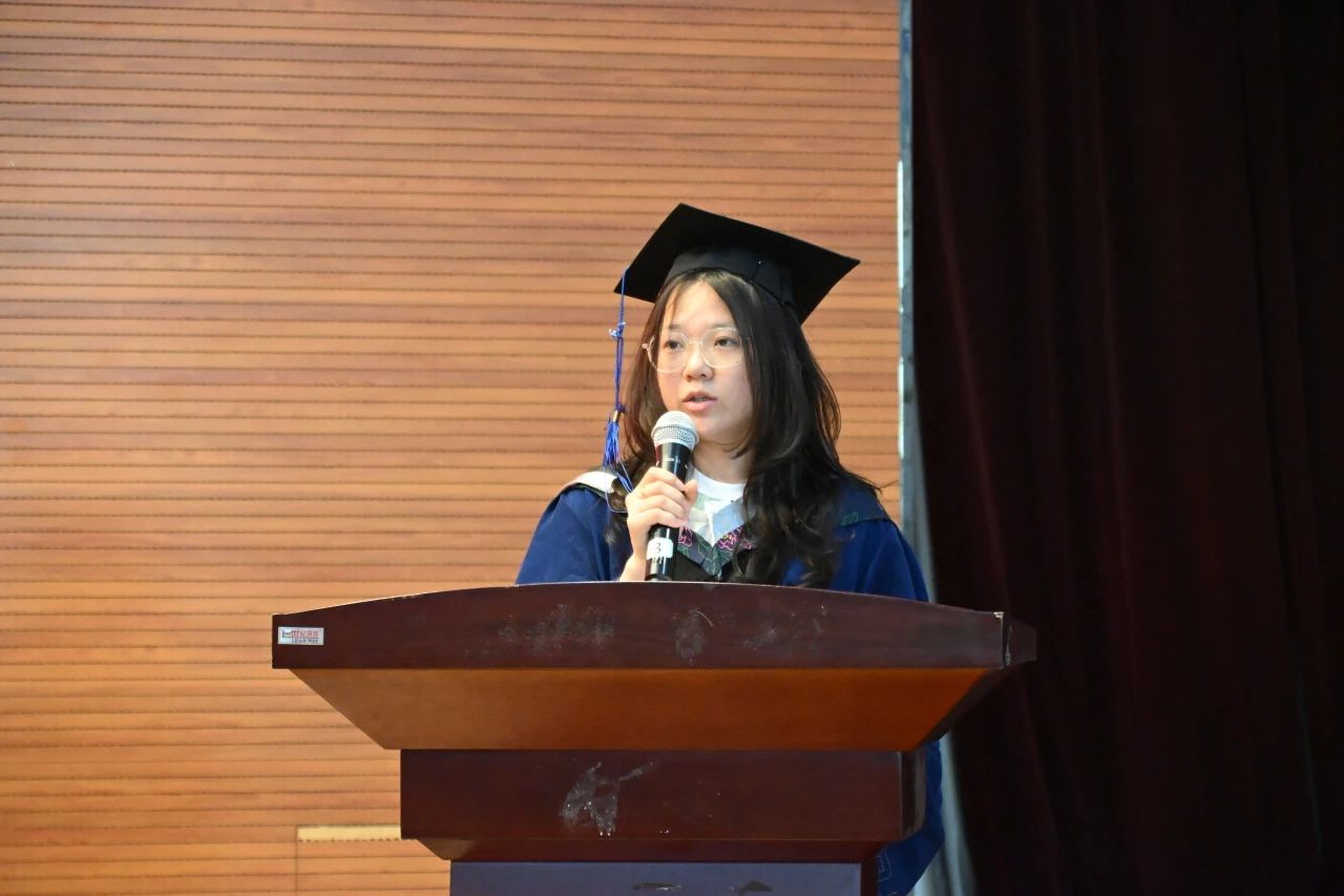 祃海霞分享与员工们相伴的四年时光,希望同学们能够用数据的力量赋能决策,用数学的智慧创造人生价值,她送给全体毕业生“五个愿望”:一愿同学们的未来如“大数定律”般稳定向好!二愿同学们的机遇如“均匀分布”般处处可寻!三愿同学们的幸福如“概率1”般必然发生!四愿同学们的潜力如“无穷级数”般无限延展!五愿同学们的成就如“指数增长”般快速攀升!