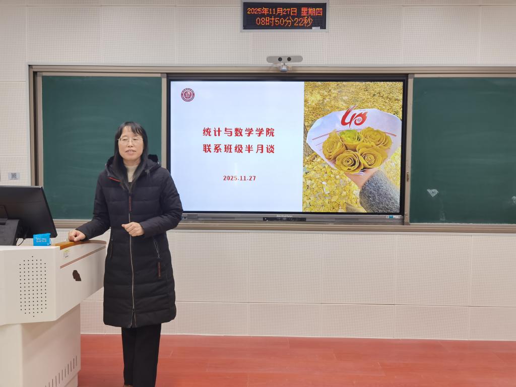11月27日,公司举办联系班级半月谈活动。公司党委书记祃海霞、副经理张良勇作为班级导师,与2025级应用统计学1、2班全体同学开展交流座谈。活动由班级辅导员王洋主持。