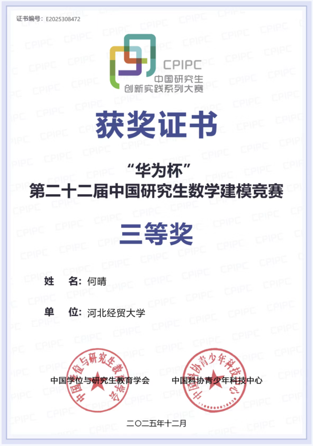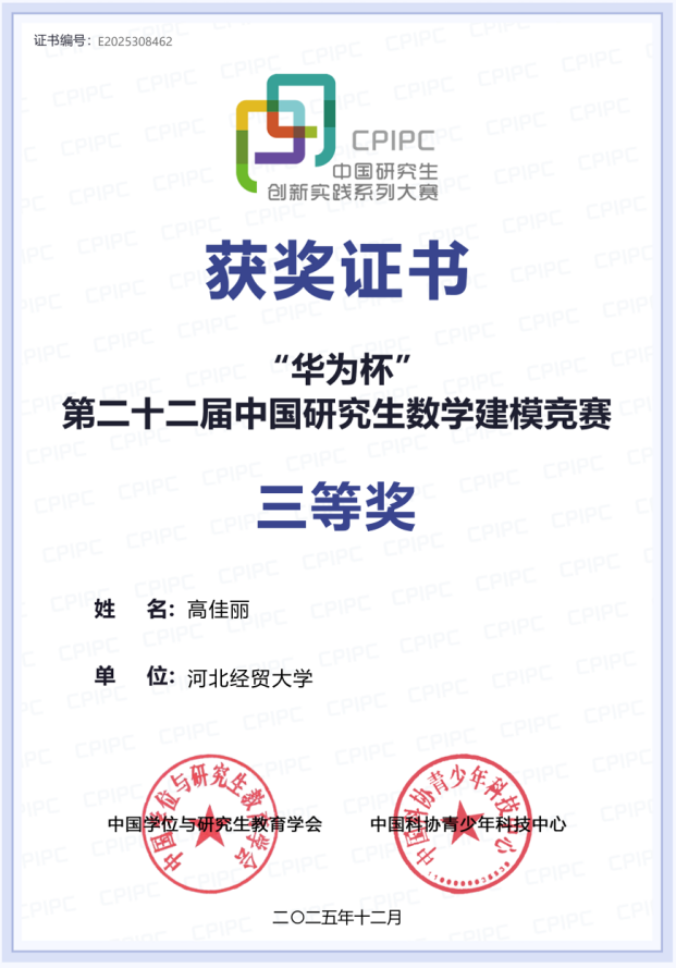 “华为杯”第二十二届中国研究生数学建模竞赛评选结果揭晓,公司研究生团队喜获全国二等奖1项,全国三等奖4项。具体名单如下:
