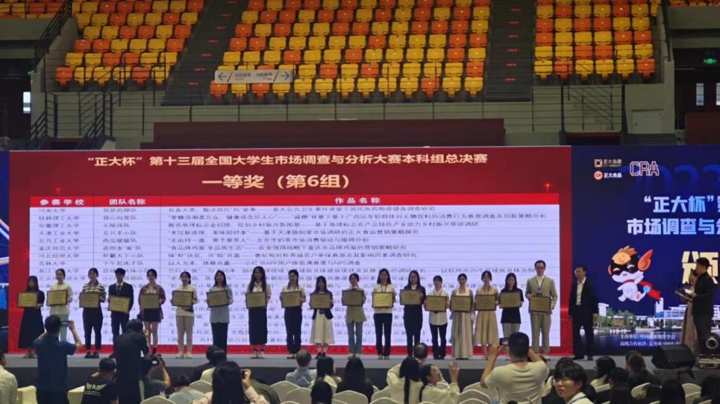 在总决赛中获得国赛一等奖的是由黄煊禾、李泽森、韩思佳、顾佳妹、林韵涵五位同学组成的“虾霸天下”团队,他们的作品《保“虾”扶农,兴“险”共富——曹妃甸对虾养殖农户参保意愿及其影响因素调查研究》(指导教师:王琦、陈华超、马天瑜)在总决赛的小组赛中表现出色,进入公开赛复活赛,最终荣获总决赛一等奖。两项二等奖分别为《寸步之间,瞬息万“便”——石家庄市“一刻钟”便民生活圈的居民感知及优化策略研究》(员工:胡忆雯、杨天宇、李紫欣、王烨楠、许梦,指导教师:张子贤、耿娟、徐金红),《立德“数”人—数据分析类课程融入思政元素调查及路径优化研究》(员工:张明雨、乔嘉嘉、周春静、韩琳茹、张雨贤,指导教师:闫亮、申博、张良勇)。太阳成tyc33455ccwww作为河北赛区组织院校,再次荣获了“正大杯”第十三届全国老员工市场调查大赛本科组最佳赛区组织奖。