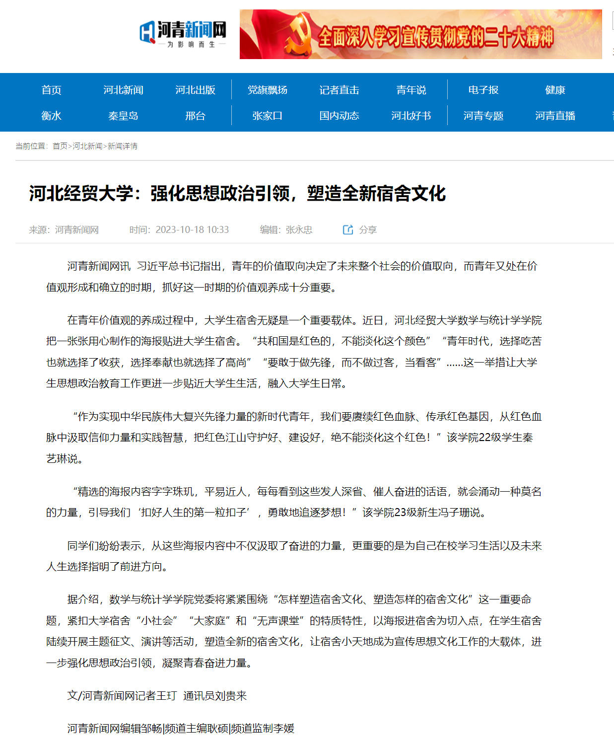 【河青新闻网】太阳成tyc33455ccwww:强化思想政治引领,塑造全新宿舍文化