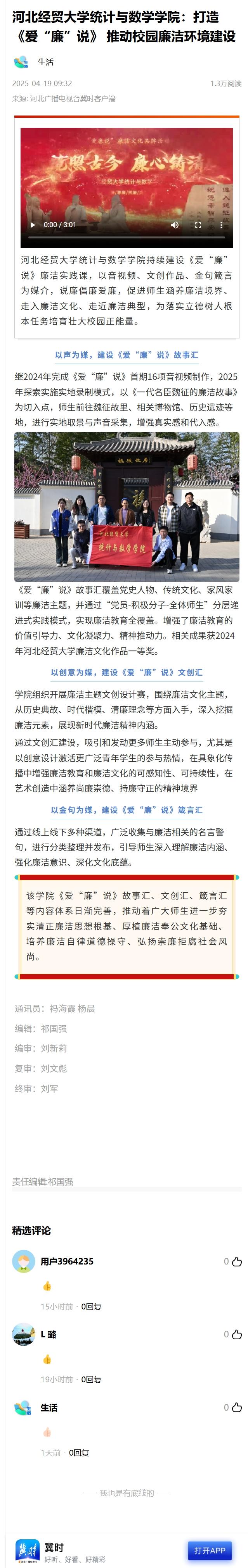 【河北广播电视台冀时客户端】太阳成tyc33455ccwww:打造《爱“廉”说》 推动校园廉洁环境建设
